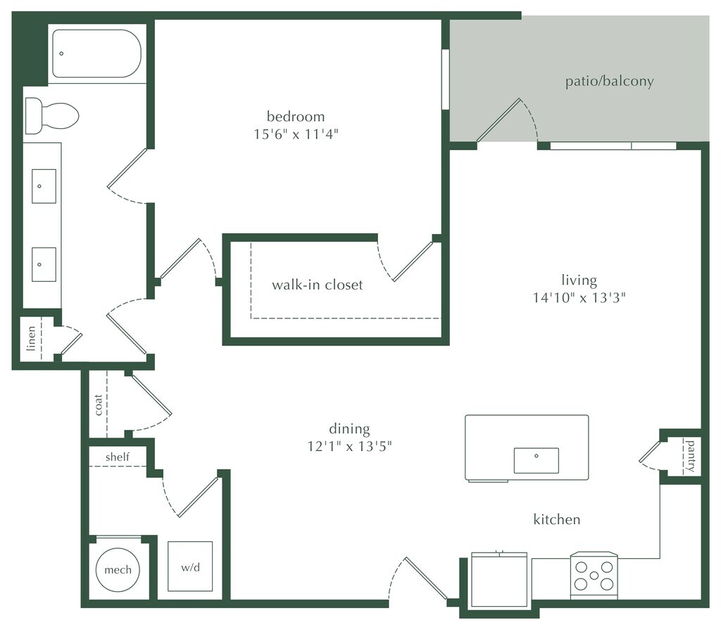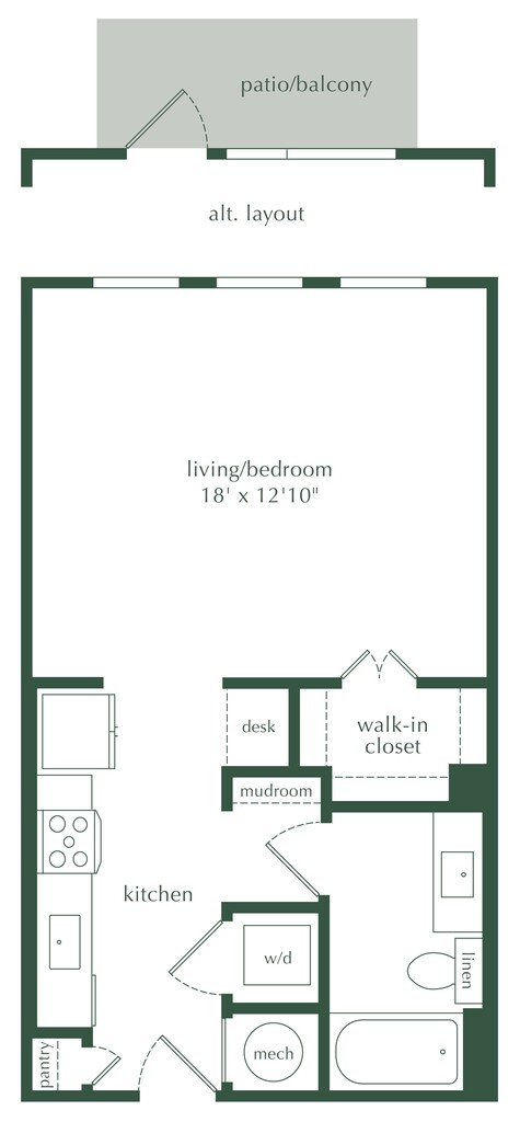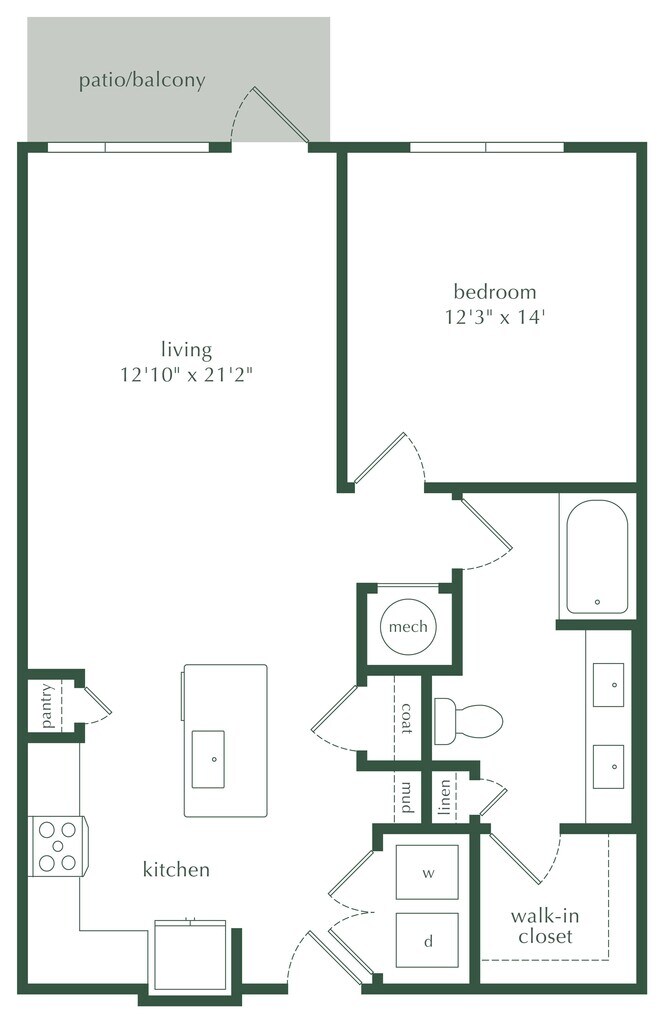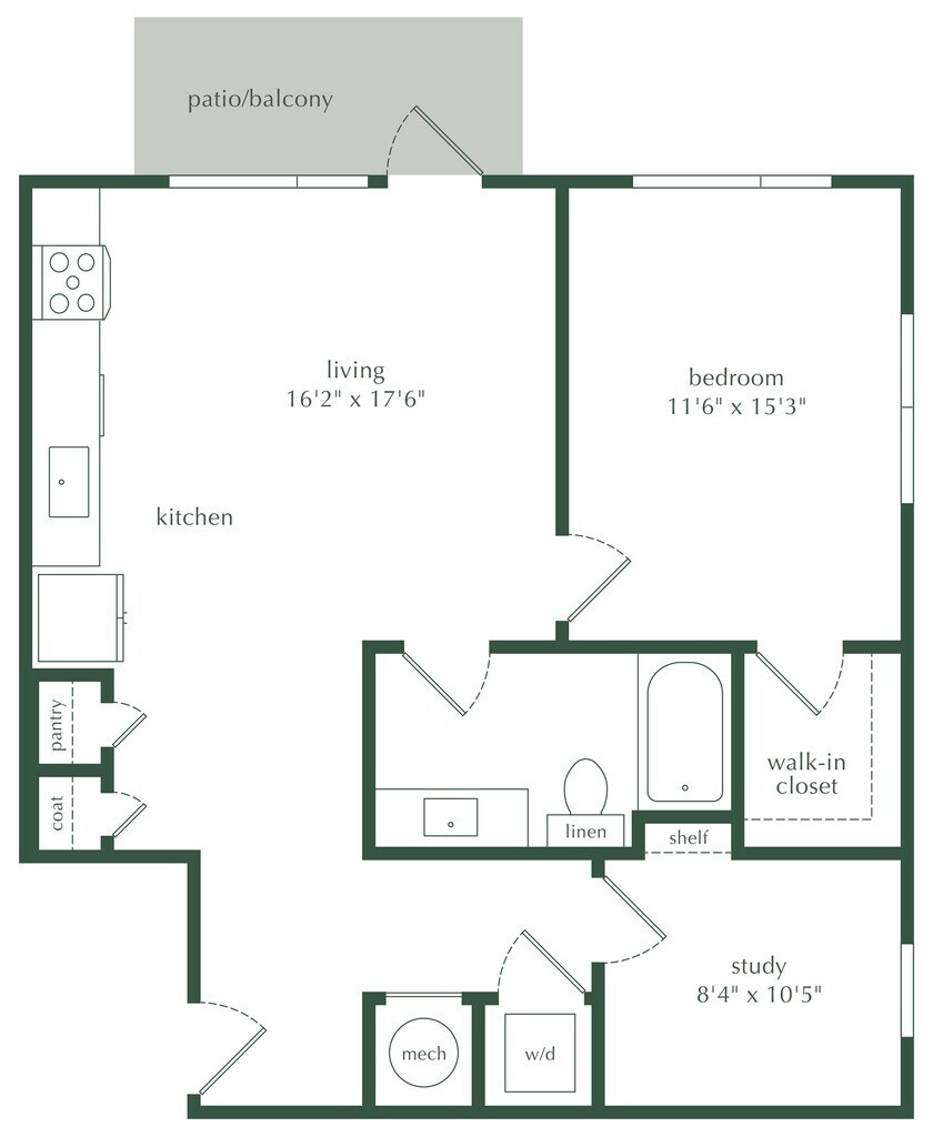 Studio, 1 Bath, 568 sq ftLargest StudioThis is the largest Studio at this PropertyModel Gallery