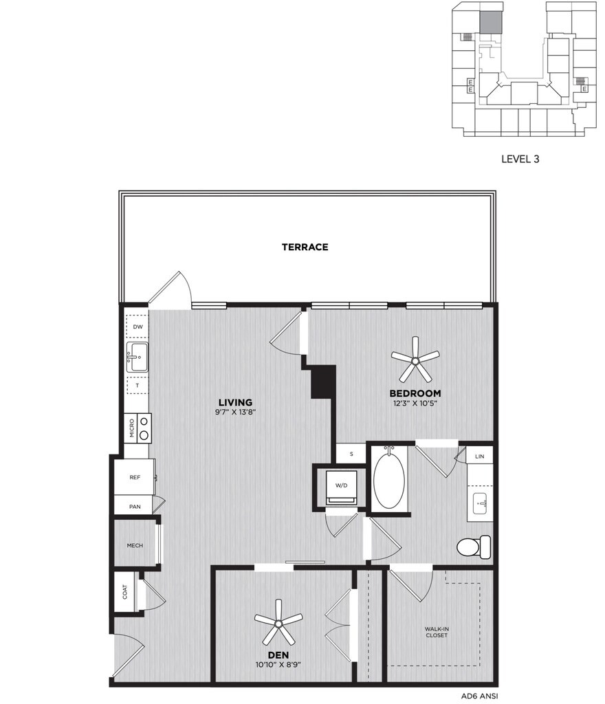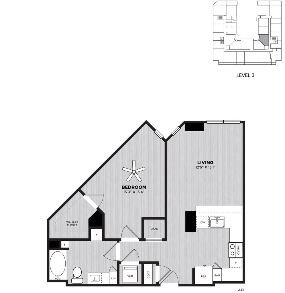 Apartment Model: A3From $1,5501 Bedroom, 1 Bath, 737 sq ftAvailable NowFloor plans are artist's rendering. All dimensions are approximate. Actual product and specifications may vary in dimension or detail. Not all features are available in every rental home. Prices and availability are subject to change. Base rent is based on monthly frequency. Additional fees may apply, such as but not limited to package delivery, trash, water, amenities, etc. Deposits vary. Please see a representative for details.