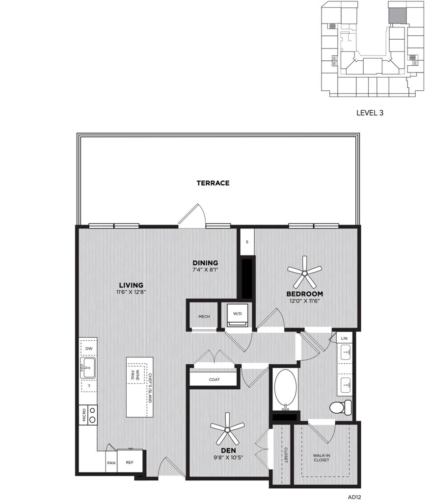 Apartment Model: A3AFrom $1,5541 Bedroom, 1 Bath, 740 sq ftAvailable NowFloor plans are artist's rendering. All dimensions are approximate. Actual product and specifications may vary in dimension or detail. Not all features are available in every rental home. Prices and availability are subject to change. Base rent is based on monthly frequency. Additional fees may apply, such as but not limited to package delivery, trash, water, amenities, etc. Deposits vary. Please see a representative for details.