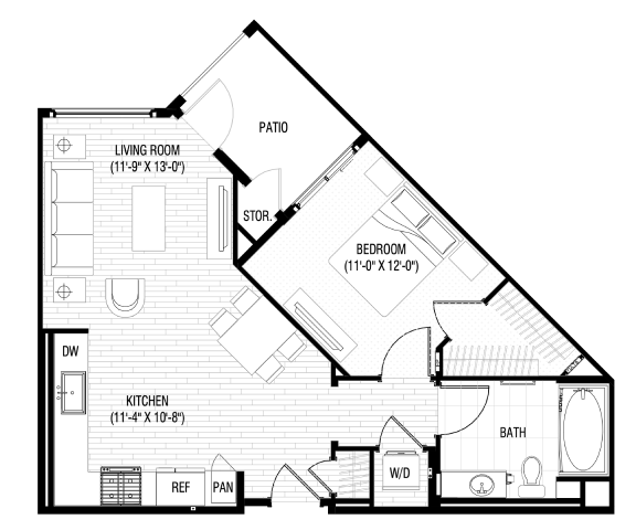 Studio, 1 Bath, 536 sq ftLargest StudioThis is the largest Studio at this PropertyModel Gallery