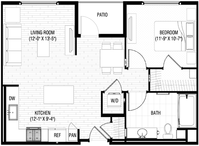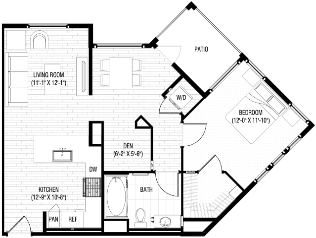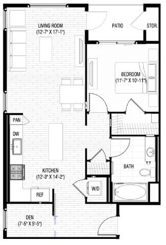 Apartment Model: A7From $2,9291 Bedroom, 1 Bath, 691 sq ftAvailable NowFloor plans are artist's rendering. All dimensions are approximate. Actual product and specifications may vary in dimension or detail. Not all features are available in every rental home. Prices and availability are subject to change. Base rent is based on monthly frequency. Additional fees may apply, such as but not limited to package delivery, trash, water, amenities, etc. Deposits vary. Please see a representative for details.