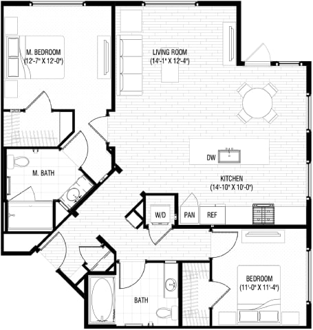 Apartment Model: A14From $3,5411 Bedroom, 1 Bath, 846 sq ftAvailable NowFloor plans are artist's rendering. All dimensions are approximate. Actual product and specifications may vary in dimension or detail. Not all features are available in every rental home. Prices and availability are subject to change. Base rent is based on monthly frequency. Additional fees may apply, such as but not limited to package delivery, trash, water, amenities, etc. Deposits vary. Please see a representative for details.