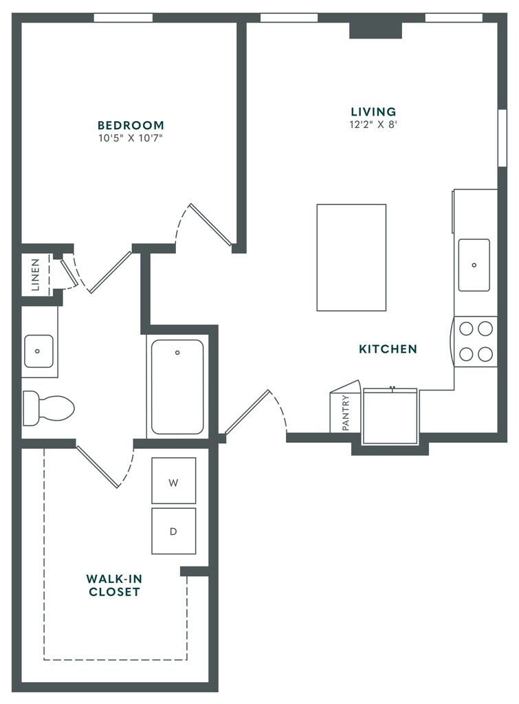 Studio, 1 Bath, 465 sq ftAvailable NowModel Gallery