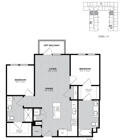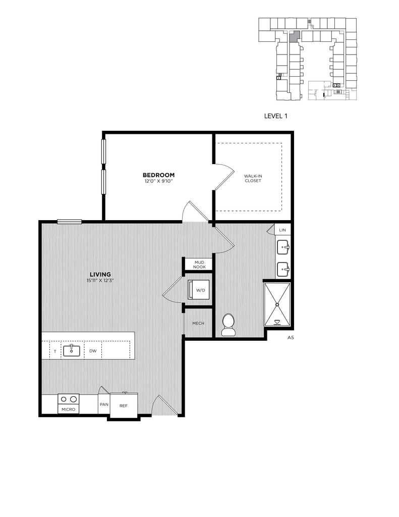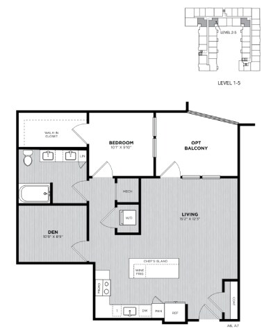 Apartment Model: A1-2From $2,6151 Bedroom, 1 Bath, 640 sq ftAvailable Now![]()
