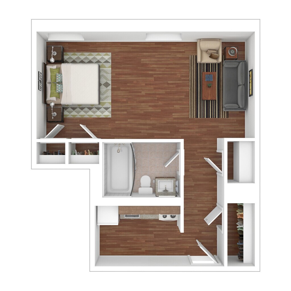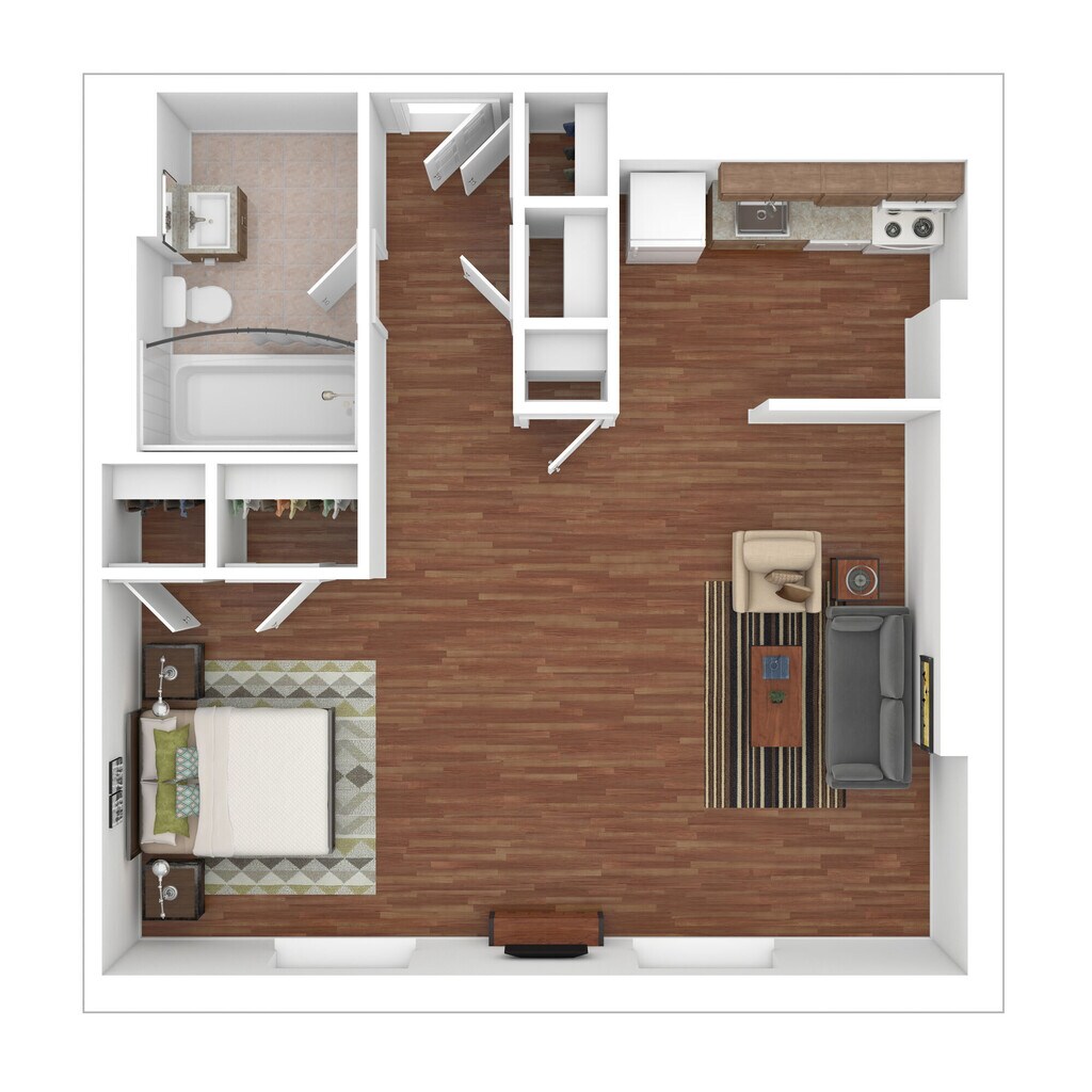 Studio, 1 Bath, 396 sq ftAvailable NowModel Gallery