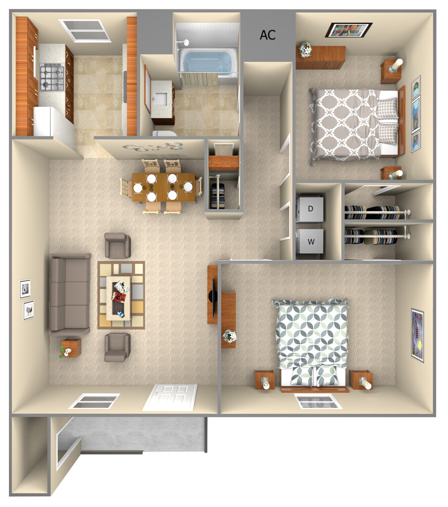 2 Beds, 1 Bath, 752 sq ftAvailable NowModel Gallery