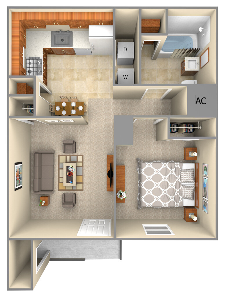 Apartment Model: 1 BR 501 Bedroom, 1 Bath, 574 sq ftAvailable Now![]()
