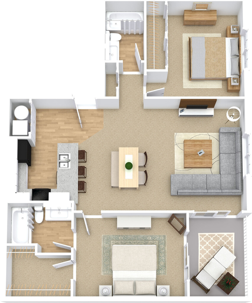 2 Beds, 2 Baths, 1067 sq ftAvailable NowModel Gallery