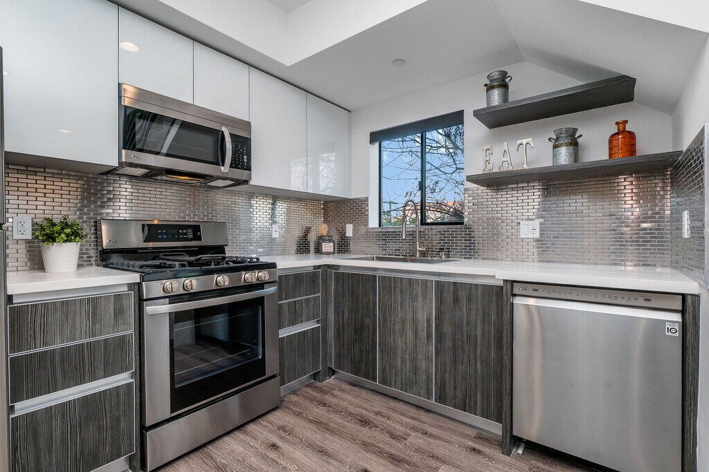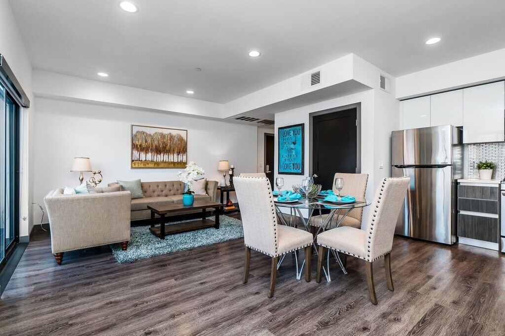 Treat yourself to the luxurious, laid-back lifestyle offered by this stunning Los Angeles residence! With 1 bedroom and 1.5 baths situated across an impressive 800-sq ft layout, this modern unit has contemporary character while maintaining an inviting ambiance. Crisp white tones, contrasting trim, and sleek vinyl flooring gleaming under recessed lighting welcome you to the open-concept gathering areas. Ideal for gourmet cooking, the kitchen equips the home chef with a full suite of stainless steel appliances, luxe cabinetry, and quartz countertops with a metallic tile backsplash. From sunrise to sunset, spectacular city panoramas greet you on the primary suite's balcony. Your ultimate retreat is also graced with a walk-in closet and a gorgeous ensuite with a marble shower enclosure and flooring. One of the best perks awaiting you in this must-see gem is a large rooftop deck where you can dine under the stars or soak up the sun during leisurely weekends. Extra features include central heating and air, an in-unit washer/dryer, and a designated parking spot. Immerse yourself in the space and privacy of a highly sought-after rental. Come for a tour!