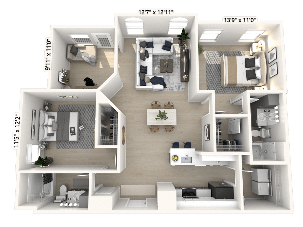 Price Availability Date Unit Sq Ft View Details $1,330 November 24, 2025 3I-11 707 $1,305 December 8, 2025 3C-9 707 $1,335 December 22, 2025 2C-12 707 Model Amenities and Features