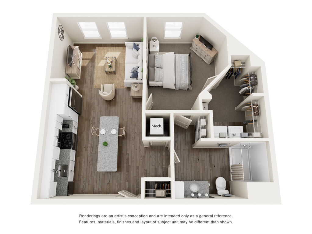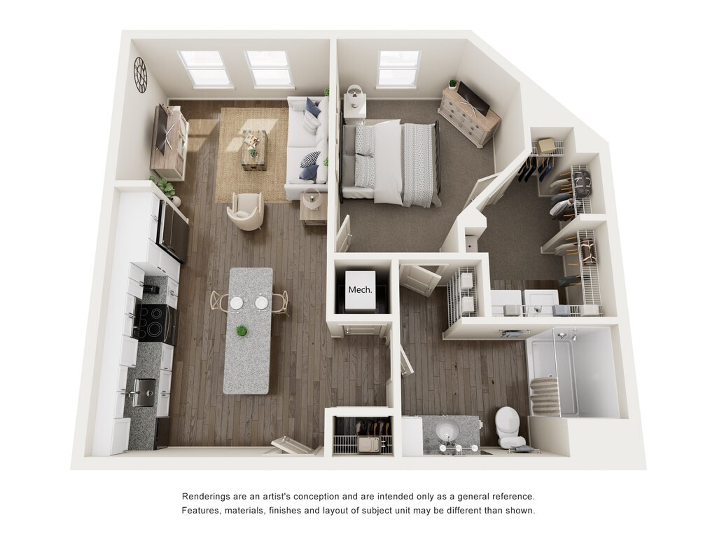 1 Bed, 1 Bath, 653 sq ftModel Gallery