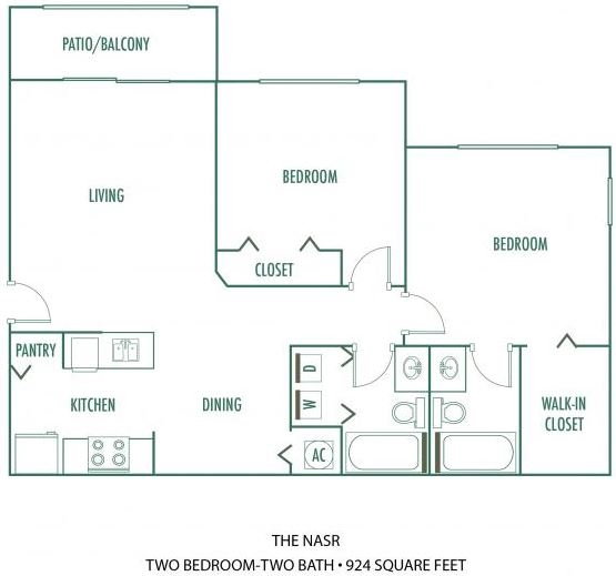 Apartment Model: The Nasr2 Bedroom, 2 Bath, 924 sq ftUnavailableFloorplansPhotos![]()