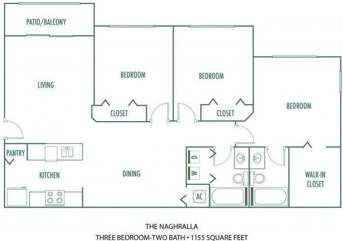 Apartment Model: The Naghralla3 Bedroom, 2 Bath, 1155 sq ftUnavailableFloorplansPhotos![]()