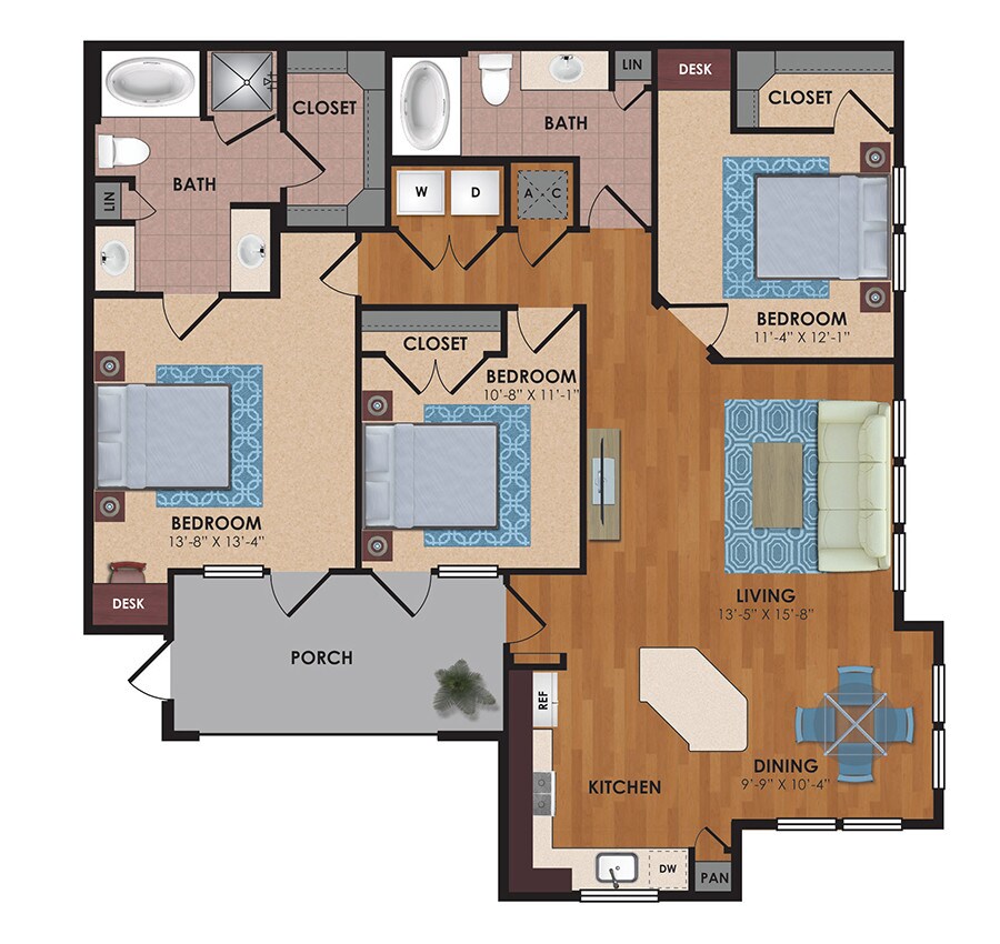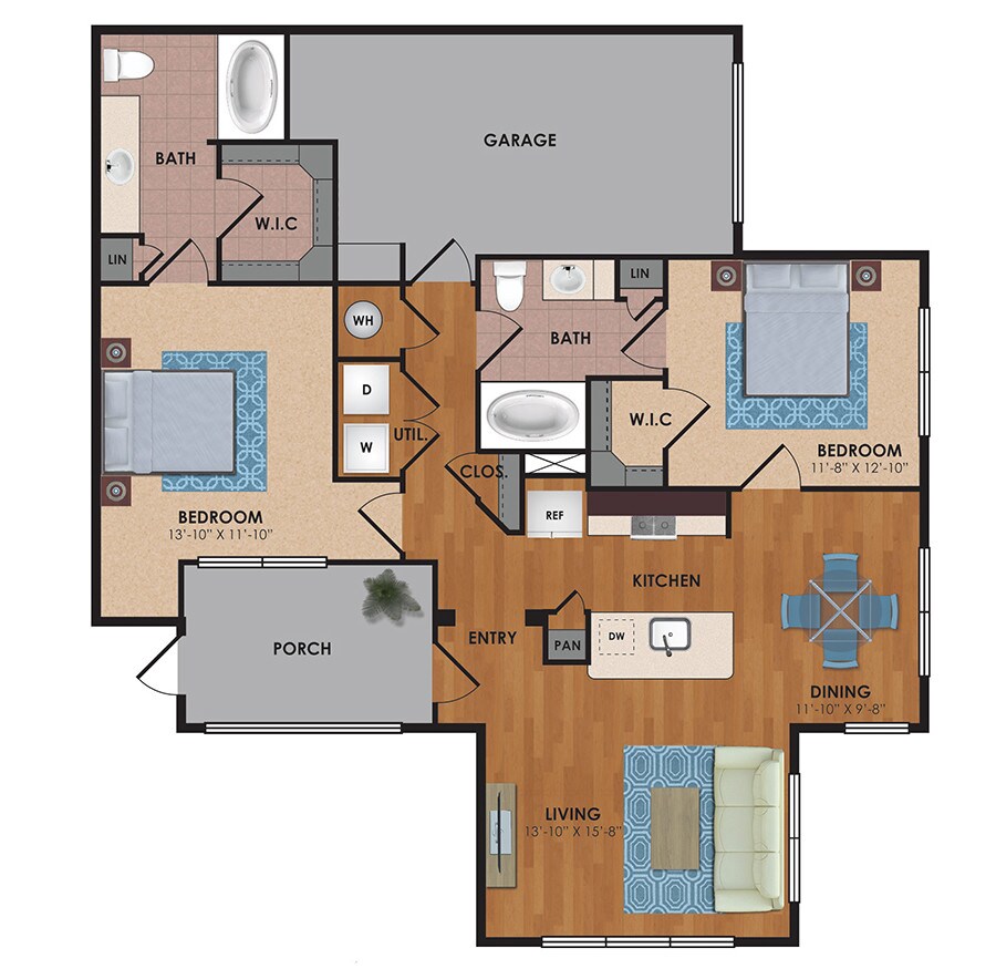 2 Beds, 2 Baths, 1133 sq ftAvailable NowModel Gallery