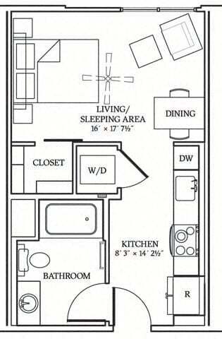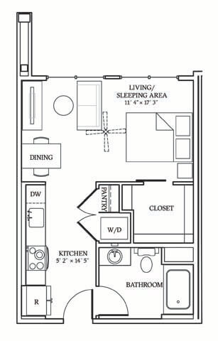 Apartment Model: STUDIO 4From $2,252Studio, 1 Bath, 493 sq ftAvailable NowFloor plans are artist's rendering. All dimensions are approximate. Actual product and specifications may vary in dimension or detail. Not all features are available in every rental home. Prices and availability are subject to change. Base rent is based on monthly frequency. Additional fees may apply, such as but not limited to package delivery, trash, water, amenities, etc. Deposits vary. Please see a representative for details.