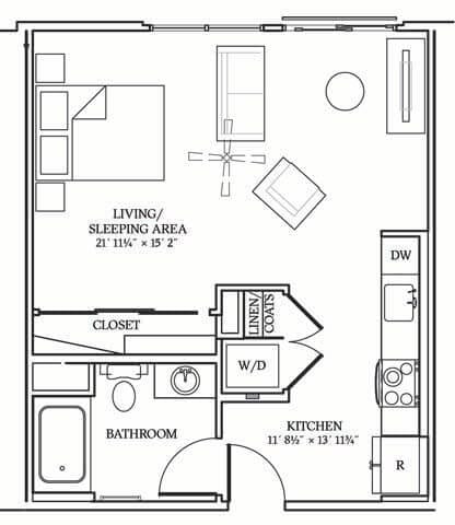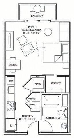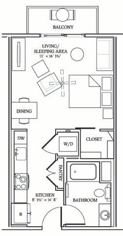 Studio, 1 Bath, 550 sq ftAvailable NowModel Gallery