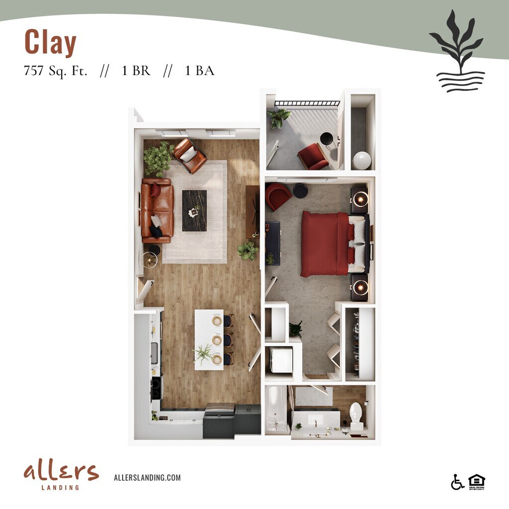 Apartment Model: Clay 120%From $1,2501 Bedroom, 1 Bath, 757 sq ftAvailable June 1, 2026![]()