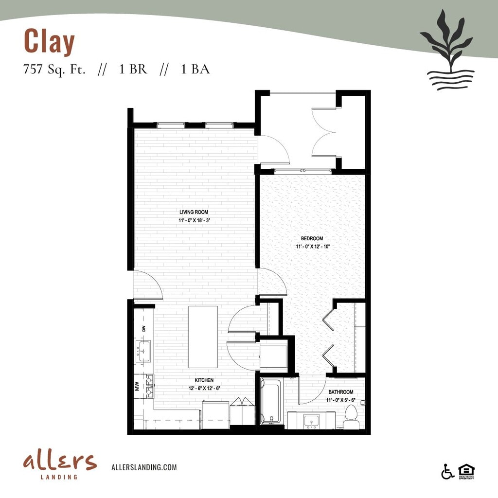 Apartment Model: Clay 50%$9991 Bedroom, 1 Bath, 757 sq ftAvailable Now![]()
