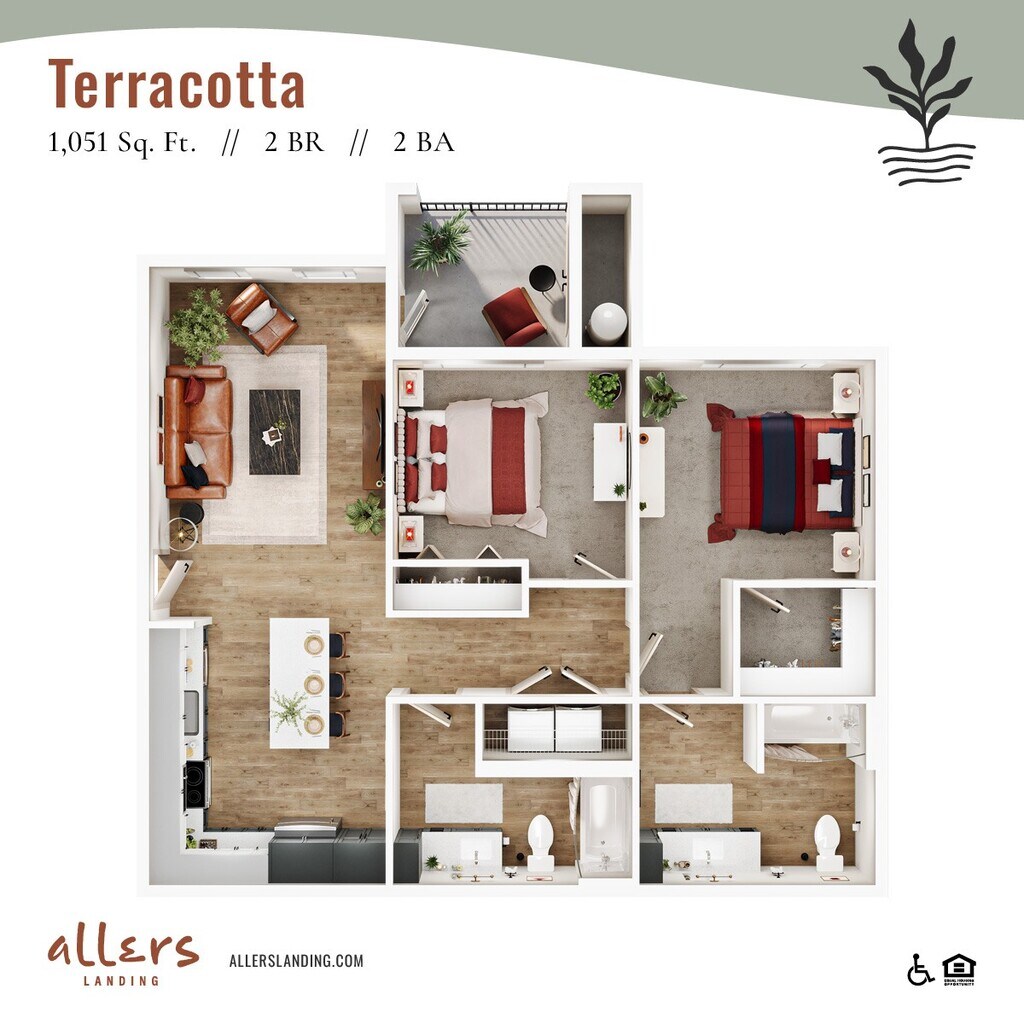 Apartment Model: Terracotta 120%$1,5992 Bedroom, 2 Bath, 1051 sq ftAvailable Now![]()