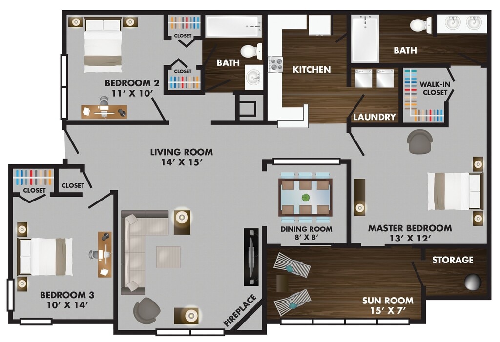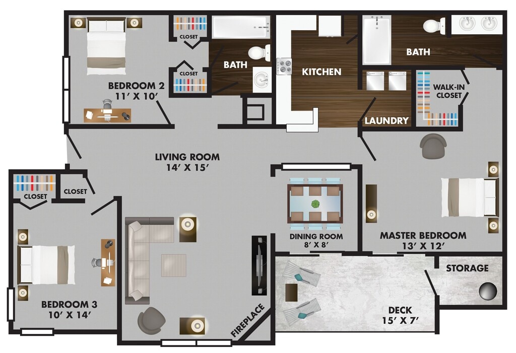 Price Availability Date Unit Sq Ft Deposit View Details $1,064 February 11, 2026 15-3211L 770 $500 $1,055 March 28, 2026 15-3211G 770 $500 $1,138 April 4, 2026 06-3212C 770 $500 Model Amenities and Features