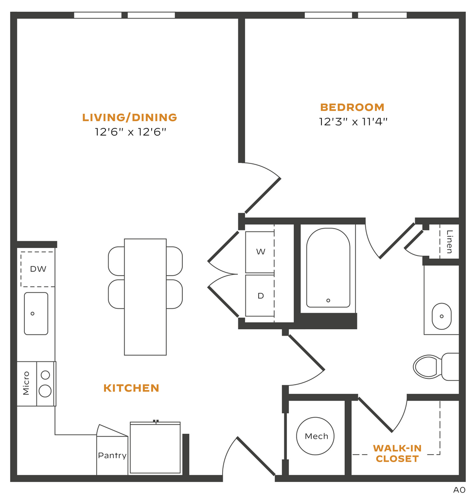 Apartment Model: 1x1From $1,3891 Bedroom, 1 Bath, 682 sq ftAvailable Now![]()