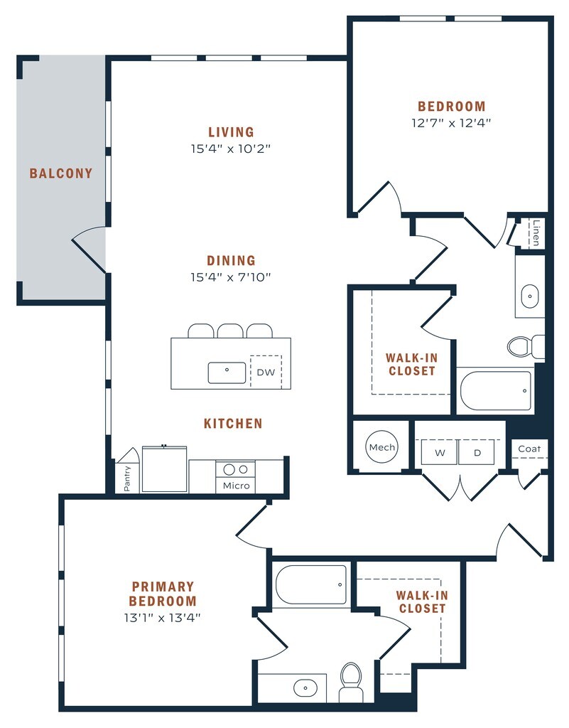1 Bed, 1 Bath, 860 sq ftAvailable NowLargest 1 BedroomThis is the largest 1 Bedroom at this PropertyModel Gallery