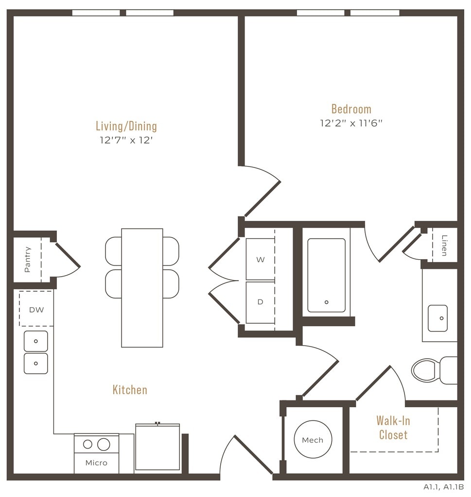 1 Bed, 1 Bath, 836 sq ftAvailable NowLargest 1 BedroomThis is the largest 1 Bedroom at this PropertyModel Gallery
