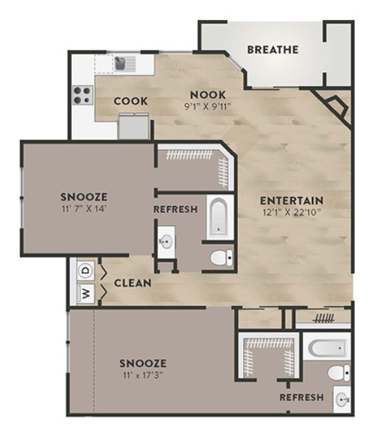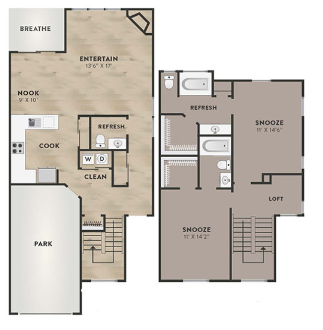 2 Beds, 2.5 Baths, 1442 sq ftLargest 2 BedroomThis is the largest 2 Bedroom at this PropertyModel Gallery