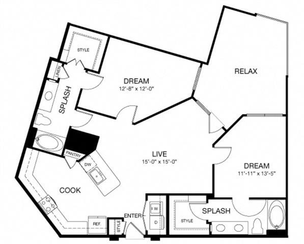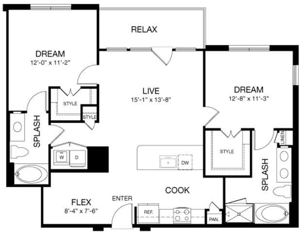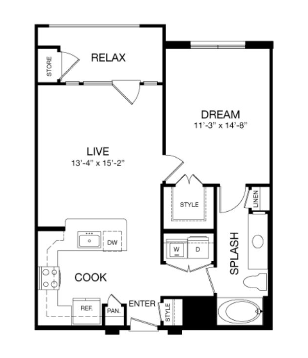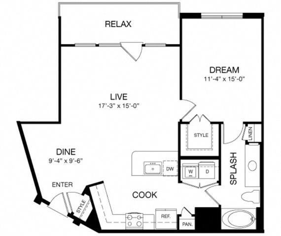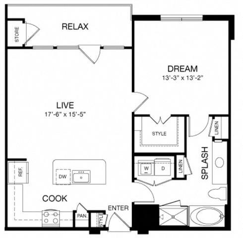 E1 - Floorplan 1 Apartment Unit: 274Apartment Model: E1$1,394Studio, 1 Bath, 653 sq ftAvailable Now1 Bedroom
