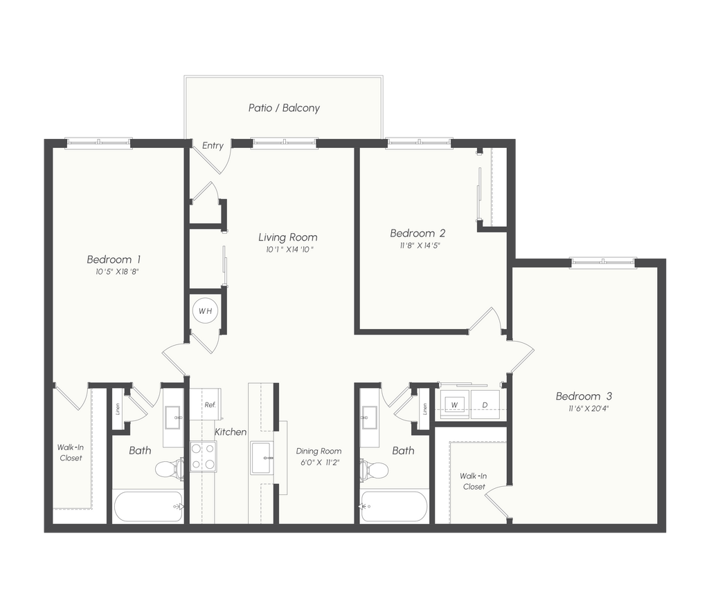 Unit: 222 - Floorplan 1 3 Bedrooms
