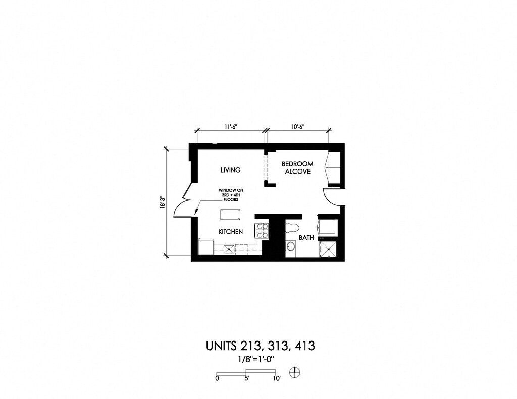S4 - Floorplan 1 Apartment Unit: 313Apartment Model: S4$1,480Studio, 1 Bath, 470 sq ftAvailable NowFloorplan S3