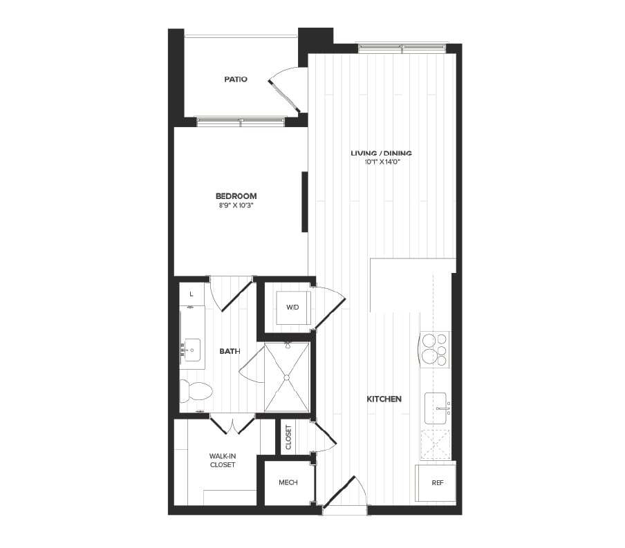 Studio, 1 Bath, 587 sq ftAvailable NowModel Gallery