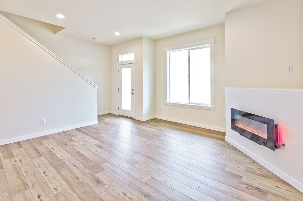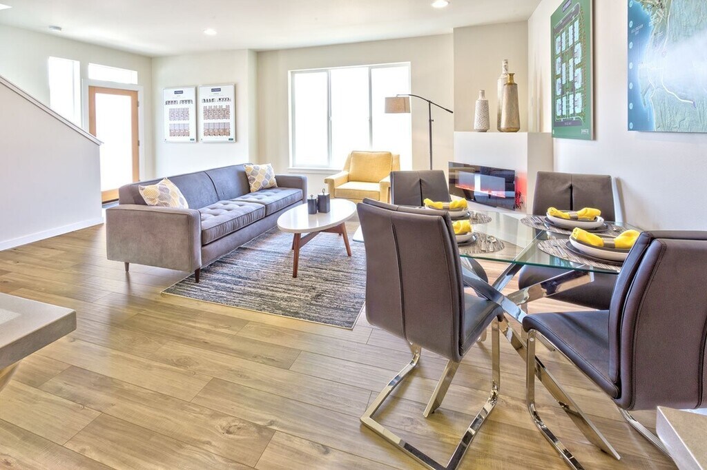 Beat the heat at this exquisite new construction townhome community in Bellingham! Experience ultimate relaxation in air-conditioned luxury as you step into your bespoke Alpengrove townhome. Every detail has been carefully curated: from the spacious full-size garage, expansive windows, and the inviting fireplace that sets the perfect ambiance. Modern convenience meets environmental consciousness with stainless-steel, eco-friendly appliances that cater to your lifestyle while minimizing your carbon footprint. Experience the ease of in-unit laundry and indulge in serene evenings on your very own private porch, where you can unwind while gazing upon the lush shared green space. Don't miss out on the opportunity to immerse yourself in the epitome of modern living.