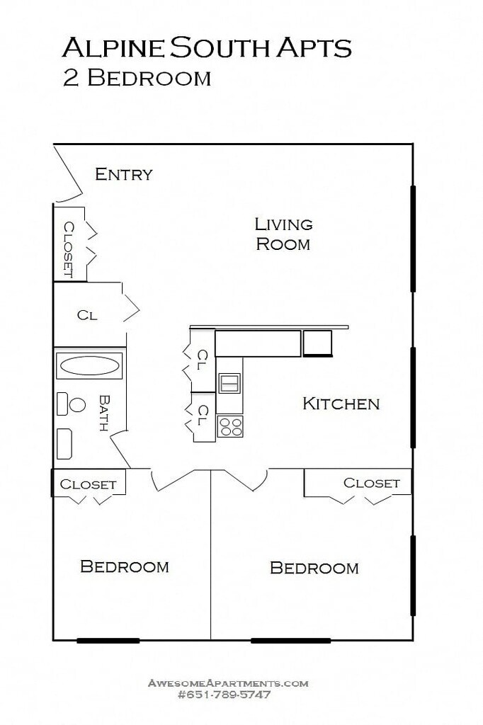 1 Bedroom 1 Bath - Floorplan 1 2 Bedrooms