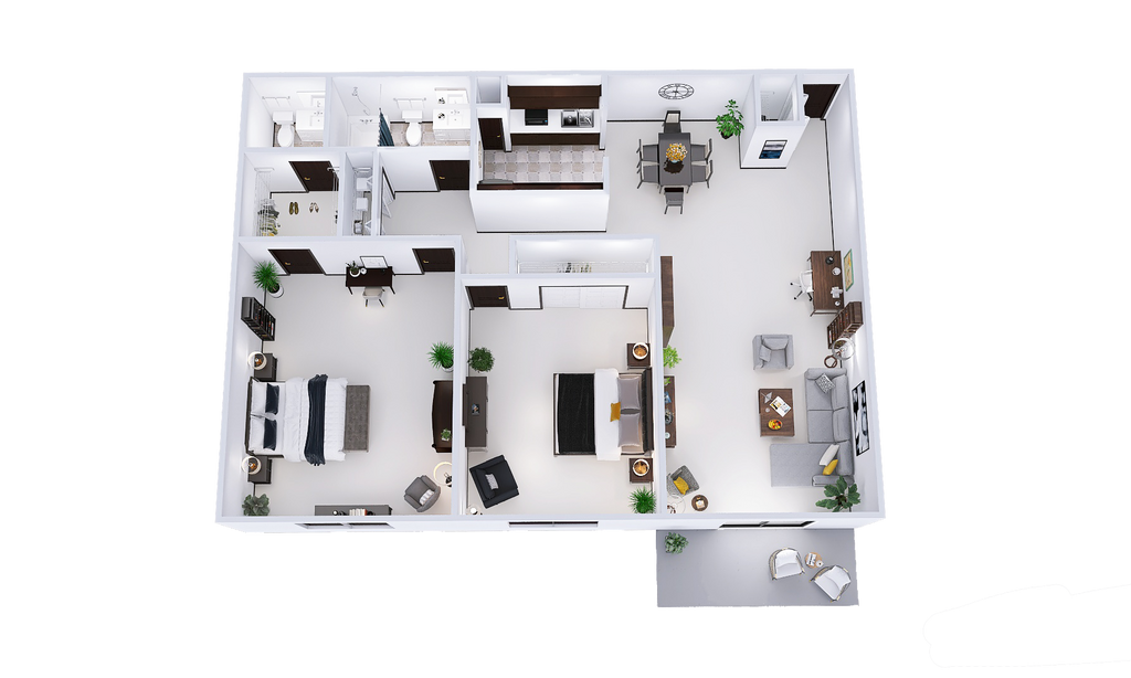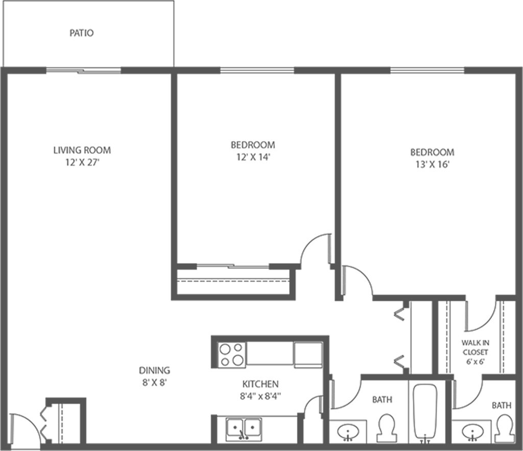 1 Bed, 1 Bath (B) - Floorplan 4 2 Bedrooms