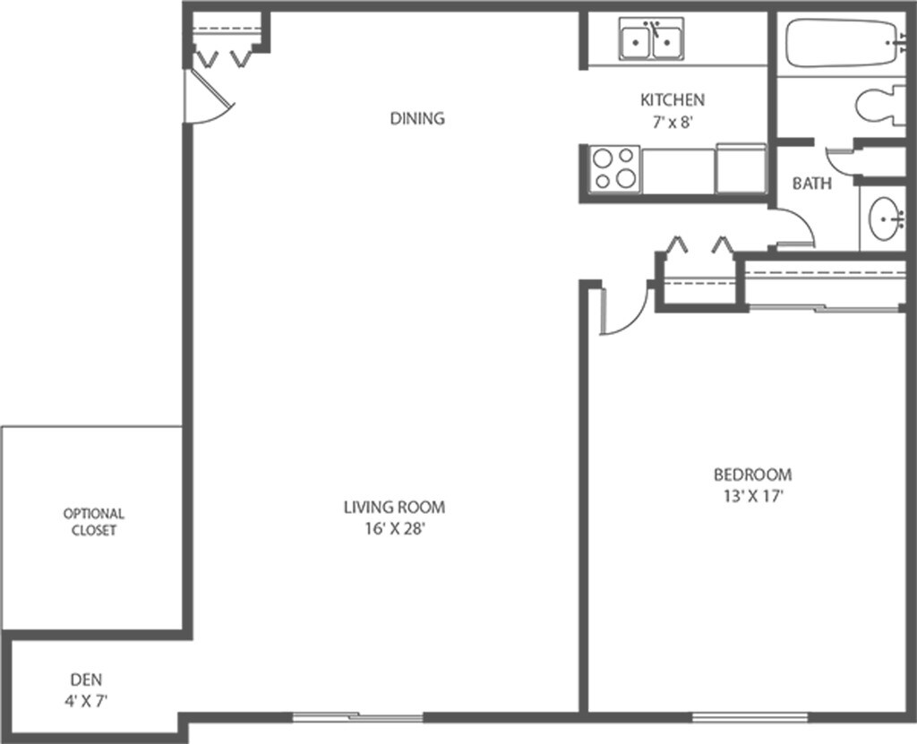 1 Bed, 1 Bath (C) - Floorplan 3 1 Bed 1 Bath + Den (A1)
