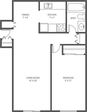 1 Bed, 1 Bath (A) - Floorplan 3 ![]()