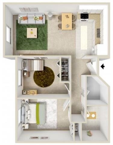 1 Bed, 1 Bath, 552 sq ftModel Gallery