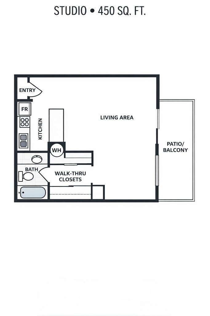 Studio, 1 Bath, 450 sq ftAvailable NowModel Gallery