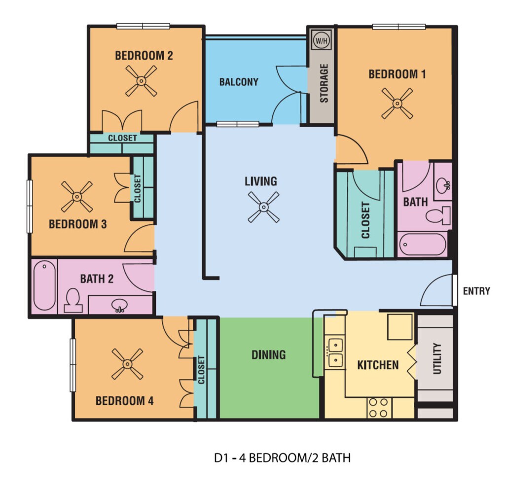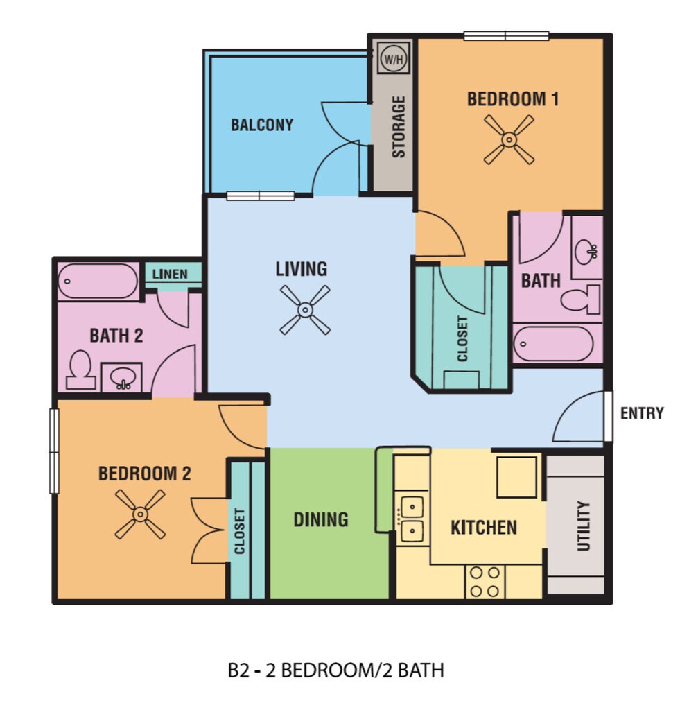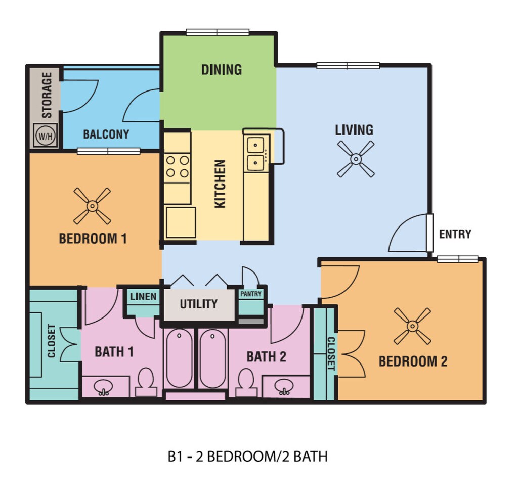 2 Beds, 2 Baths, 1171 sq ftAvailable NowLargest 2 BedroomThis is the largest 2 Bedroom at this PropertyModel Gallery