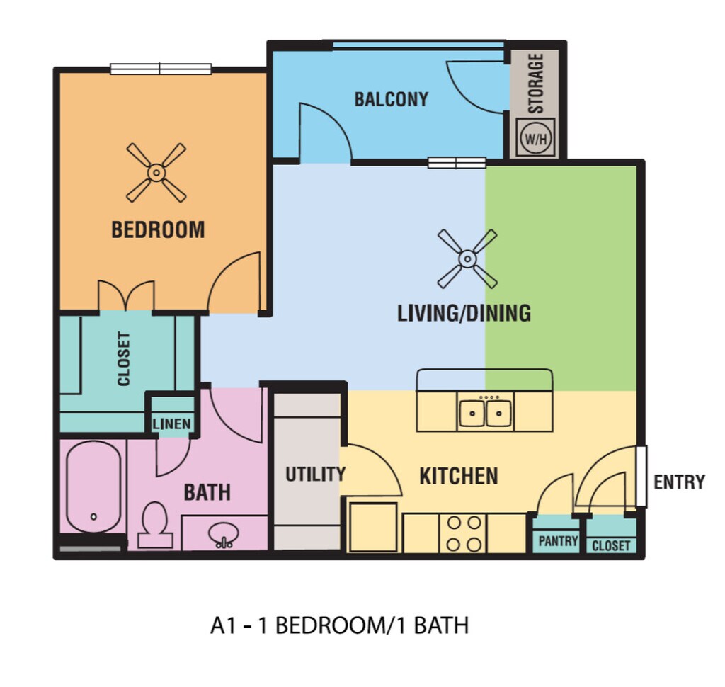 Apartment Model: A1$9571 Bedroom, 1 Bath, 720 sq ftAvailable NowFloorplansPhotos![]()