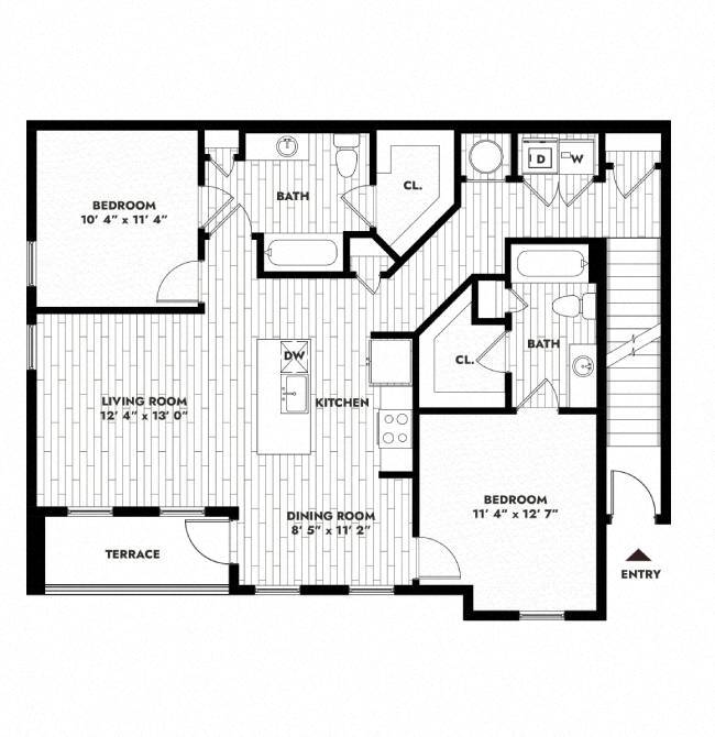 2 Beds, 2 Baths, 1172 sq ftAvailable NowLargest 2 BedroomThis is the largest 2 Bedroom at this PropertyModel Gallery