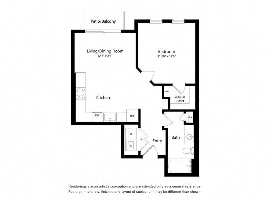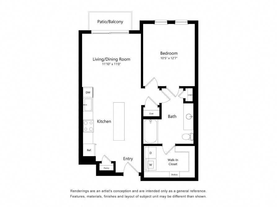 Apartment Model: 1BFrom $1,4251 Bedroom, 1 Bath, 777 sq ftAvailable NowFloor plans are artist's rendering. All dimensions are approximate. Actual product and specifications may vary in dimension or detail. Not all features are available in every rental home. Prices and availability are subject to change. Base rent is based on monthly frequency. Additional fees may apply, such as but not limited to package delivery, trash, water, amenities, etc. Deposits vary. Please see a representative for details.