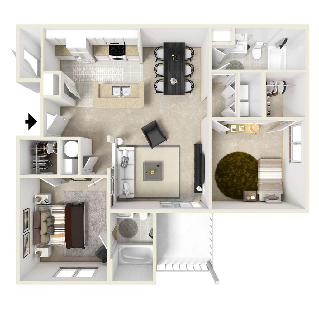3 Beds, 2 Baths, 1253 sq ftAvailable NowModel Gallery
