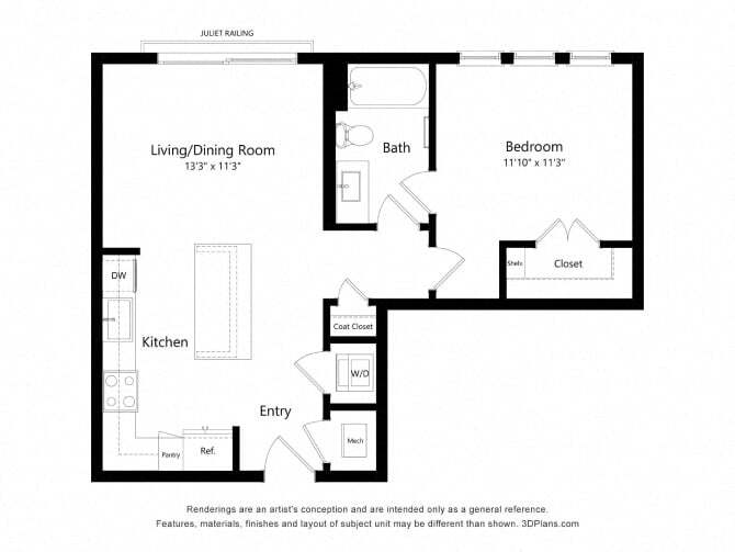 Studio, 1 Bath, 643 sq ftModel Gallery