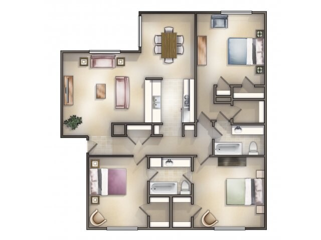 3 Beds, 2 Baths, 1375 sq ftAvailable NowModel Gallery