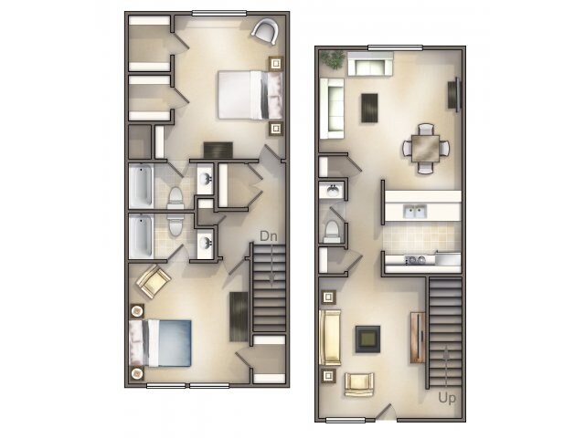 2 Beds, 2.5 Baths, 1280 sq ftAvailable NowLargest 2 BedroomThis is the largest 2 Bedroom at this PropertyModel Gallery