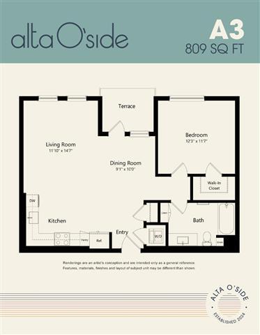 A3 - Floorplan 1 Apartment Unit: 301Apartment Model: A3$3,2021 Bedroom, 1 Bath, 809 sq ftAvailable NowFloorplan A7