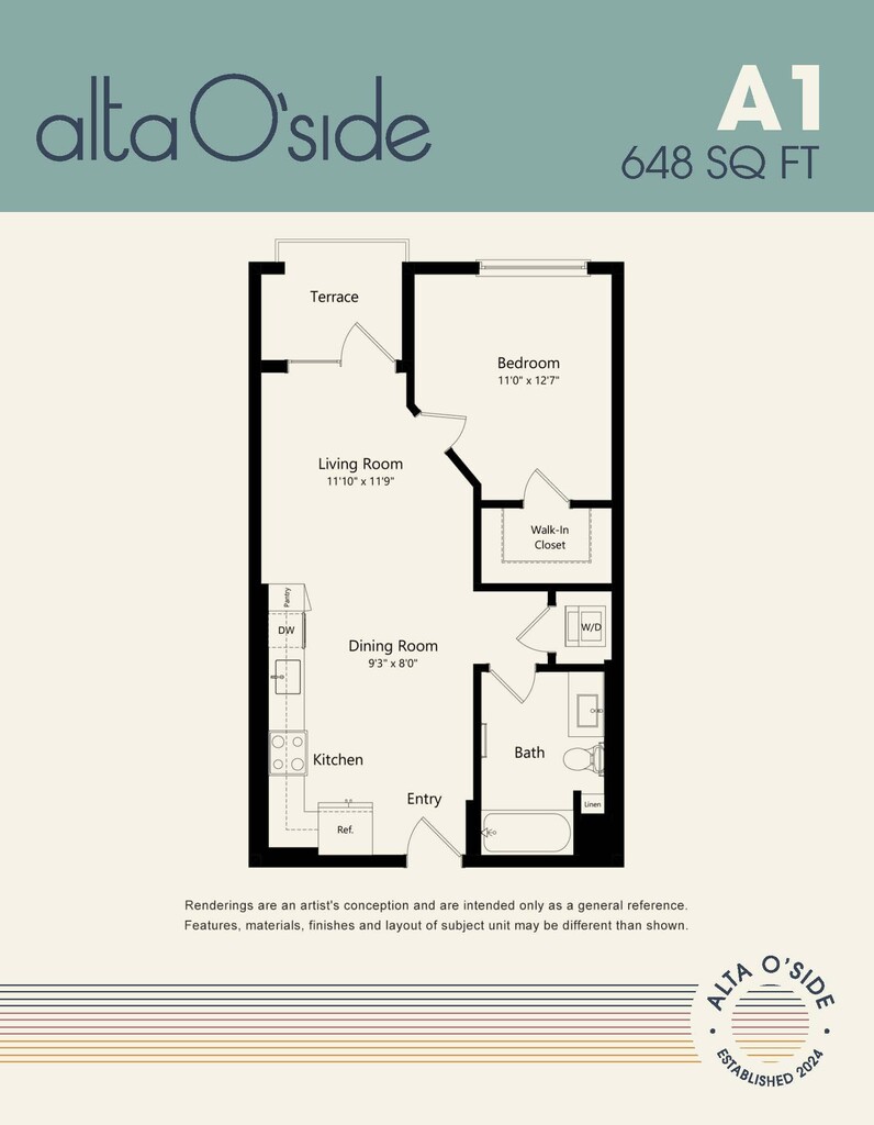 Apartment Model: A1From $2,8401 Bedroom, 1 Bath, 648 sq ftAvailable November 1, 2025Floor plans are artist's rendering. All dimensions are approximate. Actual product and specifications may vary in dimension or detail. Not all features are available in every rental home. Prices and availability are subject to change. Base rent is based on monthly frequency. Additional fees may apply, such as but not limited to package delivery, trash, water, amenities, etc. Deposits vary. Please see a representative for details.