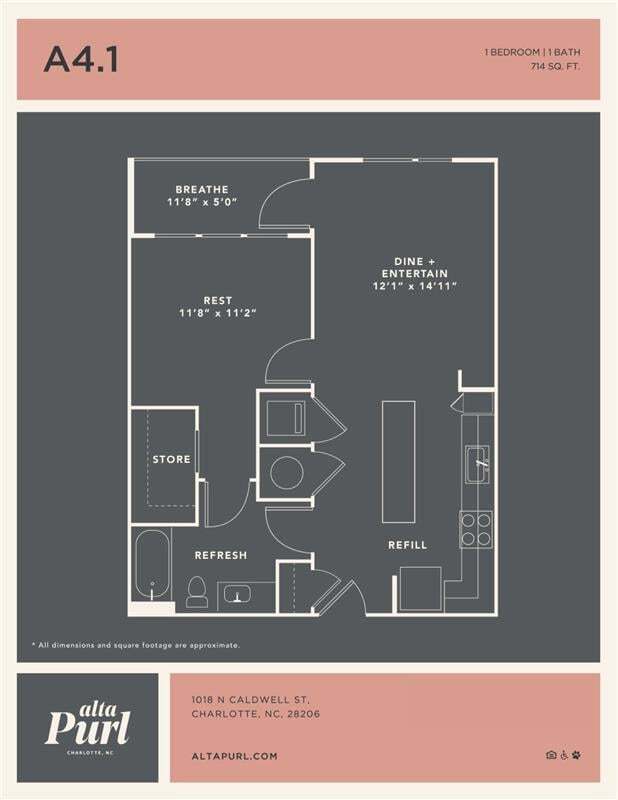 Sewn together by softened colors and state-of-the-art features, your new apartment is modern yet inviting. Come explore the many exciting features and amenities that make Alta Purl the most unique place to live in Charlotte.